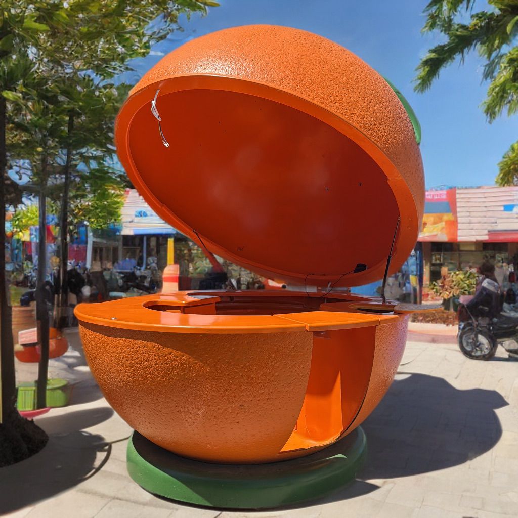 El Ícono de la Frescura: Nuestro Stand Naranja Gigante