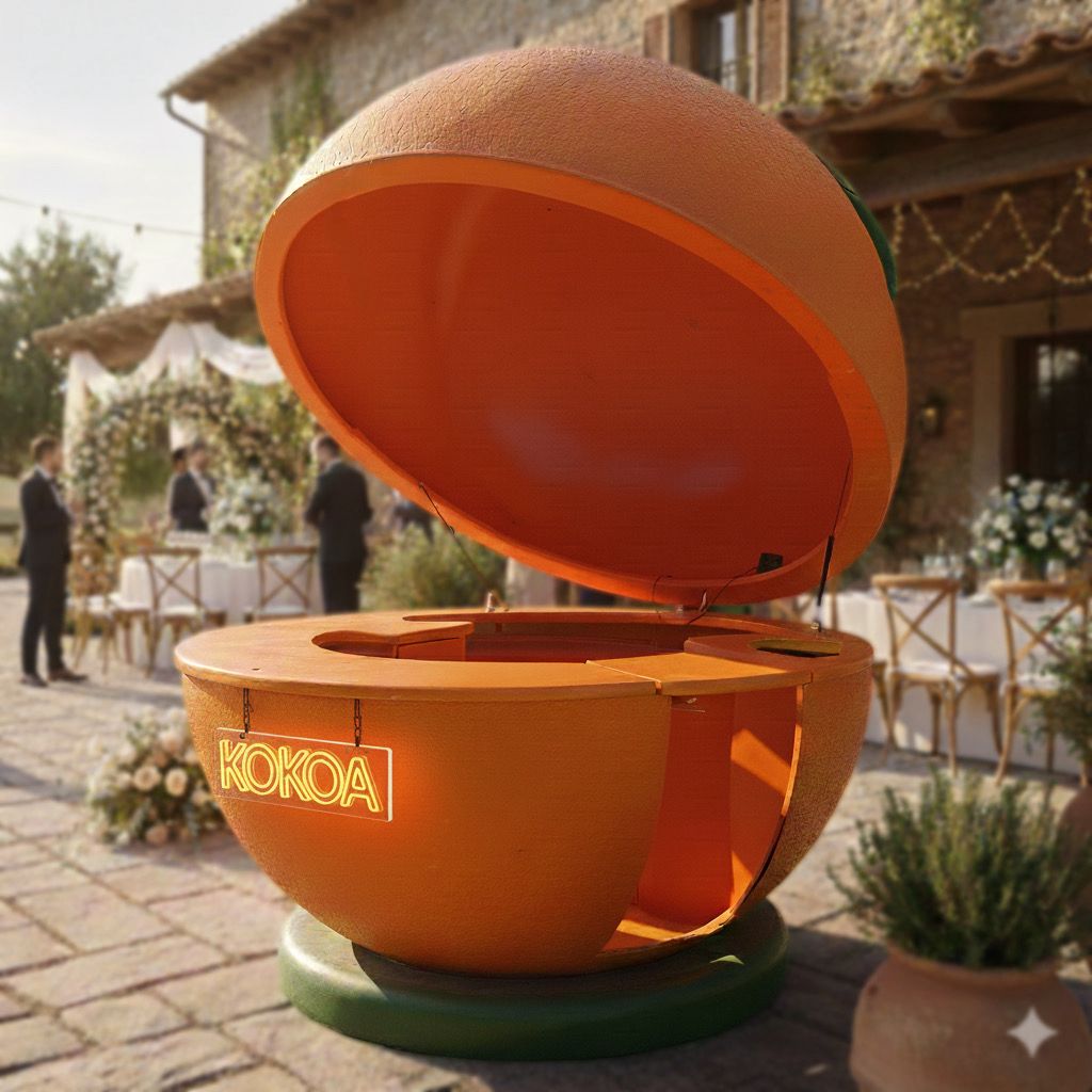 Nuestro stand estrella no solo llama la atención: la conquista. Con la forma de una naranja gigante, vibrante y jugosa, creamos un punto de encuentro exclusivo que transforma cualquier evento. Es el más demandado para bodas, cumpleaños y celebraciones especiales, y puede personalizarse para reflejar la identidad única de tu ocasión. Dentro, servimos desde los cocteles más tropicales hasta delicias únicas, haciendo de cada momento una experiencia sensorial inolvidable. Donde hay frescura, hay magia.